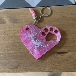 Hi everyone hope you all ok as you all know I love my dogs so here is 2 key rings I have made to brighten your keys up with a bit of glitzy glamour I can do any colour so if anyone would like a paw print or heart paw key ring please let me know lots of love xxx Ceris